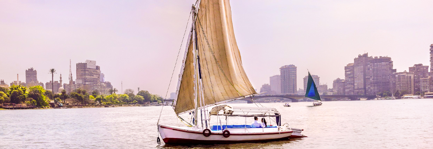 Egyptian postcards often have pictures of the Nile River and sailing boats. People use these boats, called felucca, to get around, but it is also an excellent place for tourists.