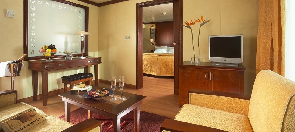 H/S Kon Tiki Nile Cruise is designed for luxury cruising on the banks of the Nile. The H/S Kon Tiki Nile Cruise holds up to 150 passengers. This cruise ship on the Nile offers a 3-night Nile cruise from Aswan and 4 nights from Luxor. The H/S Kon Tiki Nile Cruise features 70 cabins in three classes, including 64 houses. Moreover, it also has four suites and two panoramic suites. Cabins and suites provide great comfort amidst intimate, elegant décor. All H/S Kon Tiki Nile Cruise cabins have a wood-paneled Italian bathroom and bathtub. The houses also have a shower, hairdryer, and individually controlled air conditioning.