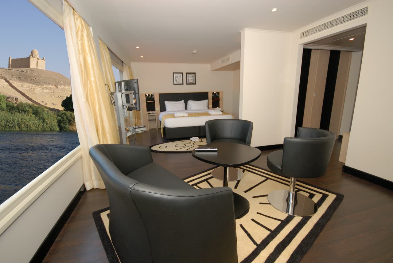 Moon Dance Nile cruise features 60 deluxe cabins and 8 luxurious suites. Everything in the Moon Dance Nile cruise is cleverly thought out. Every item in the Moon Dance Nile cruise is essential, and nothing is left to chance. The Moon Dance Nile cruise boasts an extravagant style. Excess is probably the best word to describe this boat. The Moon Dance Nile cruise features a remarkable design by a French architect. The lobby area of Moon Dance Nile cruise is astounding and decorated in a modern fashion.