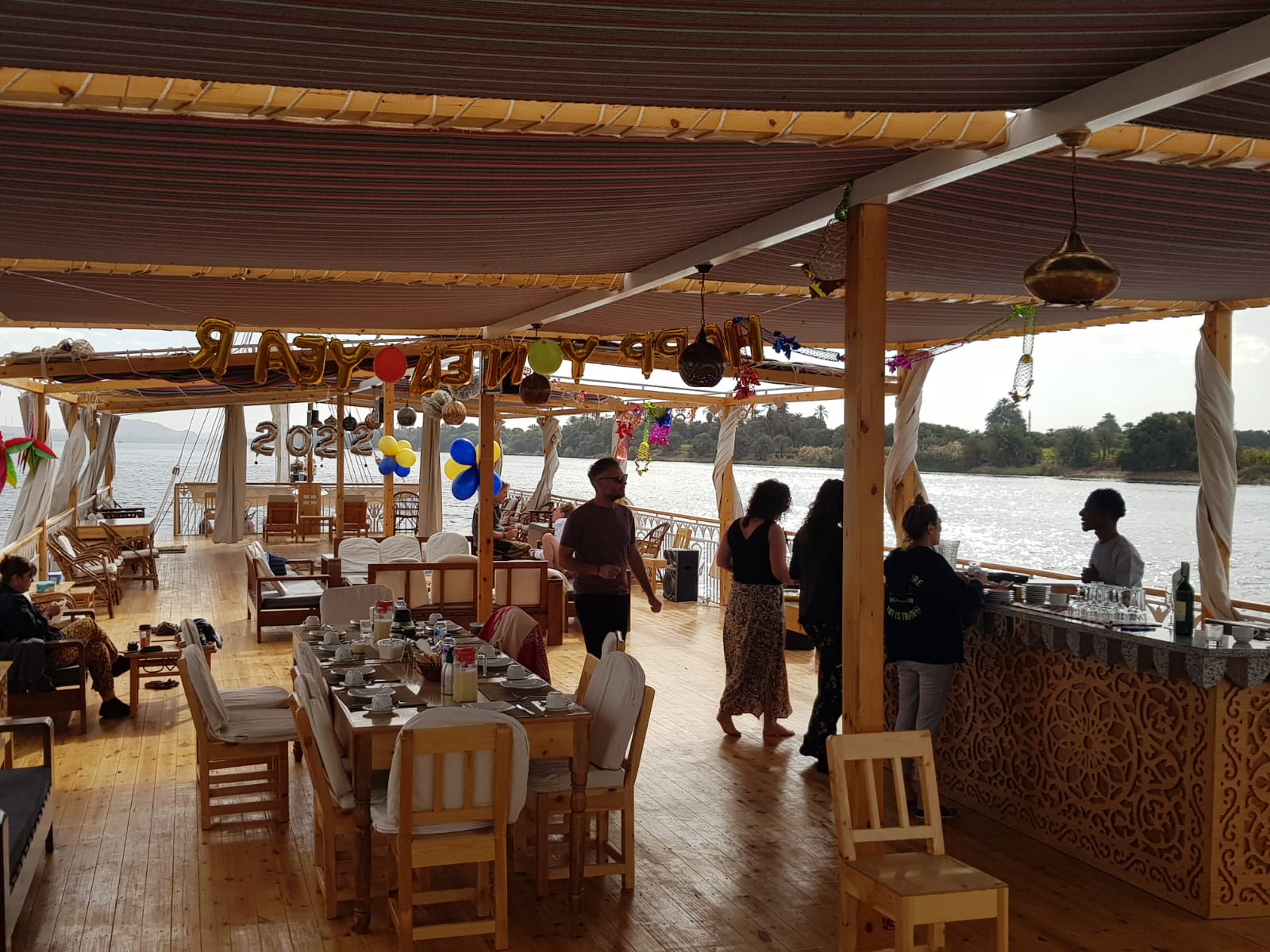 Afterward, we’ll throw away our lines and sail for an island. Once we get there, we’ll get off the boat, and either has dinner on the Sun Deck or near the Nile, depending on the weather. We are about to have a fun evening with a theme based on ancient Egypt. There will be traditional Egyptian food and music from the Middle East. Put on a gallabeyah made just for you or a costume made for belly dancing. We had a calm sail to Esna, and when we got there, we decided to spend the night there.