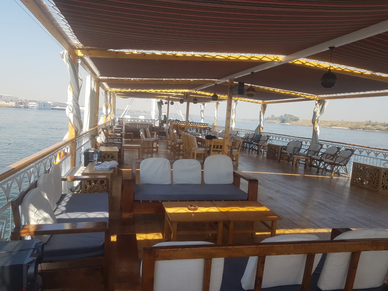The colonial style of the first Dahabiyas, built in Oman in the late 18th and early 19th centuries, was used as a model for the Sacred Lotus Dahabiya Nile Cruise, also created during this time. The heart of this traditional two-masted sailing boat is on the sundeck, partly protected from the weather by the sails. It is the perfect place to relax in a comfortable wooden deck chair and watch the world go by while taking in the view. In addition to the salon, there is a nice living area, one suite, four cabins, and one suite on the lower deck. The cozy lounge has a small library with a few books about Egypt and the Nile on display. These books have something to do with what the lounge is about. It is the perfect place to unwind after a long work day because it has comfortable sofas. While you relax with a cup of Turkish coffee or a bottle of Alexandrian wine, you can talk about your life and experiences, read a book, or play a backgammon game. You could also do any of these other things.