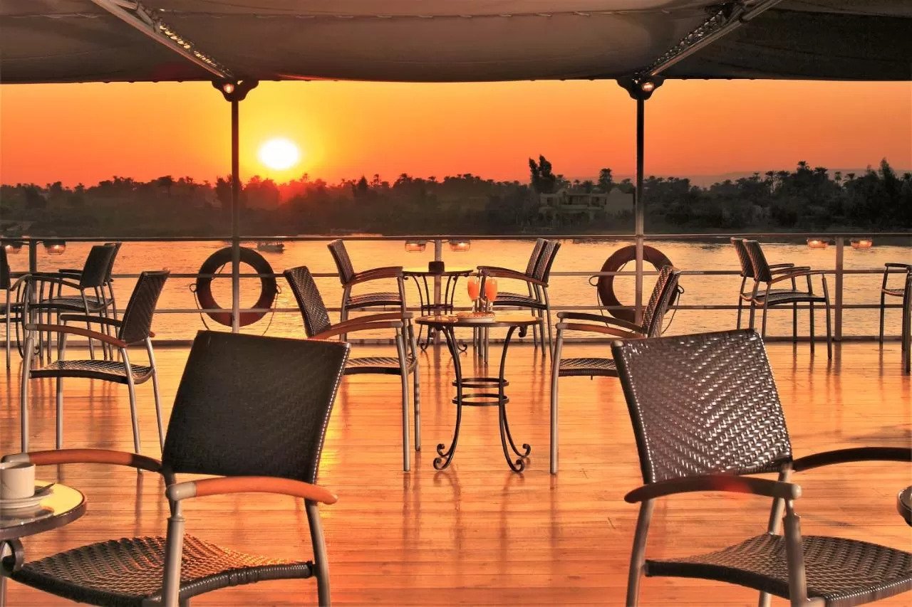 True to its name, Steigenberger Royale Nile Cruise embodies royalty. Experience an enchanting array of luxurious onboard amenities and excellent services that captivate you. Sunbathe in the pool and jacuzzi, or savor delicious drinks and stunning sunsets in our panorama bar, accompanied by some beautiful classical music. Our well-trained crew is always quick to understand and cater to your needs. A spectrum of entertainment choices, palatial suites, and plush interiors offer you royalty through the Nile. Devour our range of delicacies with the finest beverages and desserts overlooking the gorgeous Nile Cruise. Experience with Steigenberger Royale will charm even the most seasoned travelers. Imagine waking up and going to bed with a gorgeous view of the Nile- that’s what a stay at Steigenberger Royale is like with its panoramic sliding windows that provide sweeping views of this breathtaking Egyptian landscape. Coupled with deluxe amenities, it has all the ingredients of a perfect luxury cruise on the Nile.